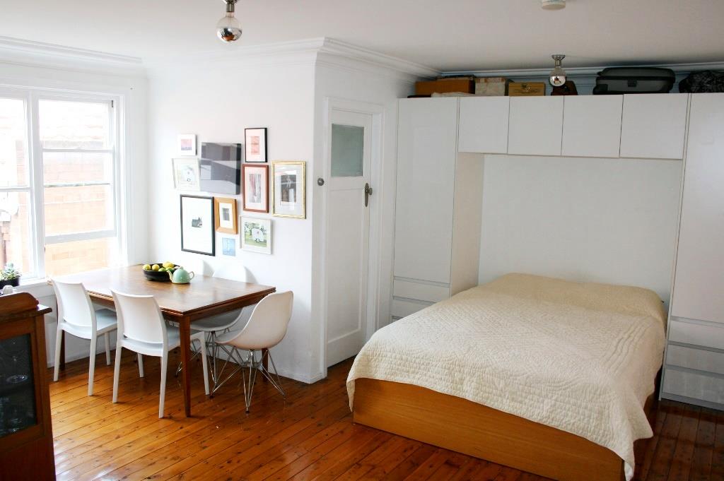 This top floor Studio apartment has a convenient T-Shape layout allowing seperate living, dining and bedding areas. Located in a quiet position, full of natural light and only a short walk to all amenities.