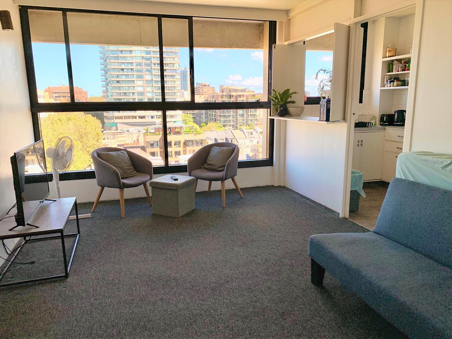 This top floor Studio apartment features a spacious living space with fantastic neighbourhood views, separate sleeping alcove, built-in storage, and a shower over bathtub.