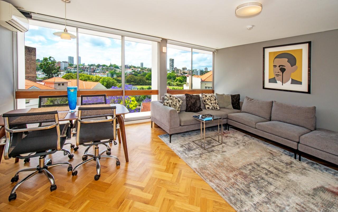 This excellent two bedroom apartment boasts architectural finishes and ideal location for lifestyle, convenience and park-side living. Stylish interiors filled with natural light, open-plan living/dining space with floor-to-ceiling windows overlooking Rushcutters Bay Park and with far reaching district views from the Cruising Yacht Club to Bondi Junction.
